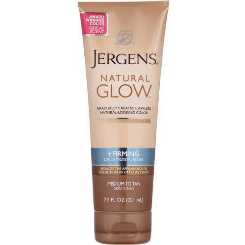 About This Item We aim to show you accurate product information. Manufacturers, suppliers and others provide what you see here, and we have not verified it. See our disclaimer Giving your skin a flawless, natural-looking glow can be as easy as applying your daily body moisturizer. Jergens Natural Glow Daily Moisturizer for Body gradually delivers subtle color even when the beach is miles (or months) away. Applying at least once a day will enhance your natural skin tone within several days, and in about one week, you’ll have beautiful, natural-looking color. Jergens Natural Glow Daily Moisturizer for Body also contains a blend of hydrating ingredients, antioxidants, and Vitamin E, so your skin stays nourished while getting its glow on. Reduces the appearance of cellulite in as little as 7 days Gradually creates flawless, natural looking color Medium to tan skin tones