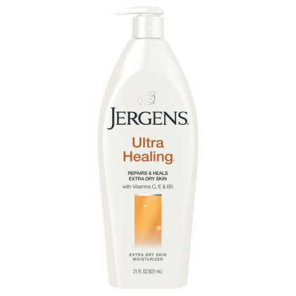 About This Item We aim to show you accurate product information. Manufacturers, suppliers and others provide what you see here, and we have not verified it. See our disclaimer Jergens® Ultra Healing® Moisturizer helps you reveal deeply luminous, visibly healthier skin. This unique formula contains an illuminating Hydralucence® blend, as well as enriching Vitamins C, E and B5. Penetrates through 5 layers of the skin's surface to repair, heal and deeply nourish extra dry skin. Jergens® Moisturizers are created to make a beautiful difference for your skin—a difference you can actually see, feel and experience. Only our formulas are made with an illuminating Hydralucence® blend. Restore your skin's deep luminosity to reveal skin that's never looked so beautiful. Hydralucence® Moisturizer, Extra Dry Skin Repairs & heals extra dry skin with vitamins C, E & B5. Nourishes & heals. Jergens Ultra Healing Moisturizer helps you reveal deeply luminous, visibly healthier skin. This unique formula contains an illuminating hydralucence blend, as well as enriching vitamins C, E and B5. Penetrates through 5 layers of the skin's surface to repair, heal and deeply nourish extra dry skin. Jergens Moisturizers are created to make a beautiful difference for your skin - a difference you can actually see, feel and experience. Only our formulas are made with an illuminating hydralucence blend. Restore your skin's deep luminosity to reveal skin that's never looked so beautiful. Hydralucence. Dermatologist tested. Questions or comments? www.jergens.com or 1-800-742-8798.
