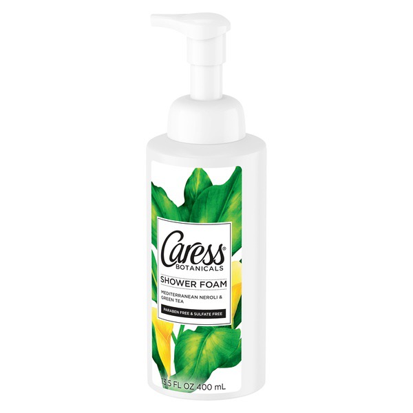 About This Item We aim to show you accurate product information. Manufacturers, suppliers and others provide what you see here, and we have not verified it. See our disclaimer Discover the first ever shower foam from Caress with Mediterranean Neroli and Green Tea. Indulge yourself in a light, smooth foam that instantly awakens your senses. Press the pump to instantly release an airy, foaming lather, which rinses quickly and leaves skin feeling clean and smooth. Caress Botanicals Shower Foam: a new shower sensation. Paraben free. Sulphate free. Caress Botanicals Mediterranean Neroli and Green Tea Shower Foam, 13.5 oz Paraben free Sulphate free Instant lather