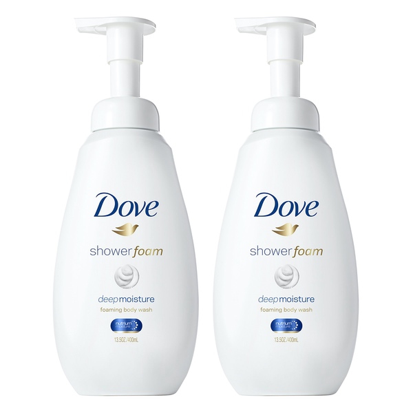 About This Item We aim to show you accurate product information. Manufacturers, suppliers and others provide what you see here, and we have not verified it. See our disclaimer Experience a shower like no other with Dove Shower Foam. It's the first-ever self-foaming pump bottle innovation from Dove, providing the light skin feel you want with the care your skin needs. The instant foaming body wash contains our NutriumMoisture technology and our mildest cleansers, creating a light, airy lather that rinses away quickly. Dove Shower Foam Deep Moisture Foaming Body Wash has a nourishing body wash lather that reaches deep* into the surface layers of the skin and helps replenish skin's natural nutrients, which are essential for maintaining your skin's natural moisture balance. This helps leave skin looking and feeling healthy, soft, and smooth. To use, simply press the pump, spread the soft lather, and enjoy a quick rinse. With over 250 pumps per bottle, you can use the shower foam generously. Dove has a 60-year history in skin cleansing, now giving you more skin cleansing options without compromising on care. At Dove, our vision is of a world where beauty is a source of confidence, and not anxiety. So, we are on a mission to help the next generation of women develop a positive relationship with the way they look - helping them raise their self-esteem and realize their full potential. *Within the stratum corneum. Dove Shower Foam Deep Moisture 13.5 oz, 2 count Instant foam gives a light, airy lather Moisturizing body wash gently cleanses and cares for skin From the #1 dermatologist recommended body wash brand Lightweight body wash with NutriumMoisture technology Dove Shower Foam foaming body wash rinses off quickly Helps maintain your skin’s natural moisture as you cleanse
