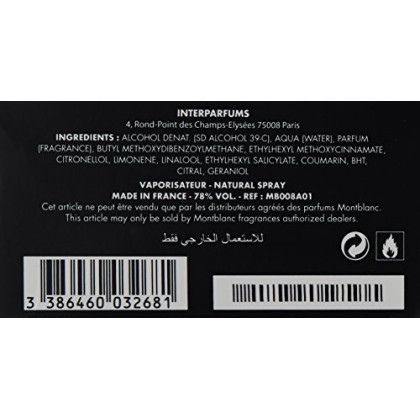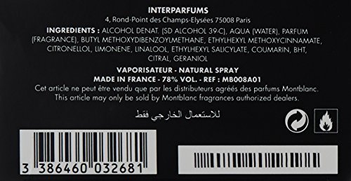 About This Item We aim to show you accurate product information. Manufacturers, suppliers and others provide what you see here, and we have not verified it. See our disclaimer Mont Blanc’s Legend is dedicated to inspiring, virtuous and self-confident men who are courageous, passionate and authentic. Subtle but striking and masculine, Olivier Pescheux, the perfumer behind this fresh fougere creation, attempted to design a fragrance filled with contrasts, combining notes that evoke strength and tenderness, tradition and modernity. The composition opens with fresh aromatic tones of bergamot, lavender, pineapple leaf and exotic verbena. The heart emphasizes oak moss note merged with geranium, coumarone, apple, rose, and Pomarosa molecule. The base contains sandalwood, Tonka and evernyl. Heavy and slightly curved bottle of black and metallic colors is inspired by the famous Meisterstuck pen design, made of glass and metal. The design is minimalistic and luxurious, perfect for the concept behind this fragrance. Top notes: bergamot, lavender, pineapple leaf, and verbena Heart notes: oakmoss, germanium, coumarone, apple, rose, and Pomarosa molecule Base notes: sandalwood, Tonka bean, and evernyl Intended for men