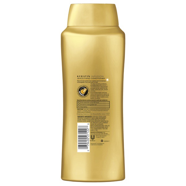 About This Item We aim to show you accurate product information. Manufacturers, suppliers and others provide what you see here, and we have not verified it. See our disclaimer Suave Professionals Keratin Infusion Smoothing Conditioner infuses hair with keratin and leaves hair sleek, smooth and easy to style. Formulated with Keralock Technology, Suave Professional's lower sulfate, PH-balanced conditioner provides long lasting smoothness and frizz control for up to 48 hours. Enjoy the luxurious, long-lasting fragrance. For stunningly sleek & smooth hair, massage conditioner into hair after using Suave Professionals Keratin Infusion Smoothing Shampoo. Leave in for 1-3 minutes to let the luxurious formula infuse every strand. Rinse. For ultimate moisturization while helping protect hair during heat styling, try with Suave Professionals Keratin Infusion Heat Defense Leave-In Conditioner. And try Suave Professionals Keratin Infusion Dry Shampoo to keep hair refreshed, smooth and manageable between regular washes. Achieve Salon-Quality Results Suave Professionals is salon-proven to work as well as salon brands, helping you achieve a variety of beautiful hairstyles while caring for your hair. This line is developed to help you achieve naturally gorgeous, healthy-looking locks. About Suave For over 75 years Suave has offered professional quality products for the entire family, which are proven to work as well as salon brands. The Suave mission is to make gold standard quality attainable to all, so everyone can look good, smell good, and feel good every day. Suave Professionals Smoothing Conditioner Suave Professionals® Keratin Infusion Smoothing Conditioner creates smooth and manageable hair Shampoo & conditioner system salon-proven to prevent frizz as well as Kérastase® Oléo-Relax (Kérastase® is a registered trademark of L'Oréal SA) Formulated with Keralock™ Technology, infuses keratin and seals the hair cuticle from the outside leaving hair soft, smooth and shiny Shampoo and conditioner system provides frizz control for up to 48 hours Use with Suave Professionals® Keratin Infusion Heat Defense Leave-In Conditioner for stunningly smooth hair Leaves hair soft, shiny, and easy to style