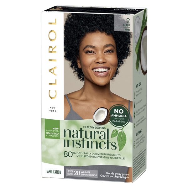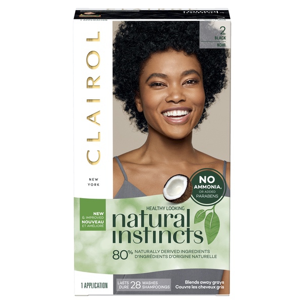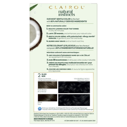 About This Item We aim to show you accurate product information. Manufacturers, suppliers and others provide what you see here, and we have not verified it. See our disclaimer Discover your natural way to shine! Made with 80% naturally derived ingredients, Clairol Natural Instincts gives you a rush of radiant, natural-looking color you can feel good about. Say "yes" to gentle ingredients like coconut oil and aloe vera and say "no" to ammonia and added parabens. Our no-drip crème formula is designed to feel more like a conditioner, and it's gentle on all hair types and textures. Treat yourself to color that blends away grays, boosts shine, and lasts up to 28 washes. Available in 37 natural shades, so you can find the black, brunette, blonde, or red hue that's totally you. Get a rush of color and boost of shine with 80% naturally derived ingredients No ammonia or added parabens Lasts 28 washes and blends away grays Available in 37 shades