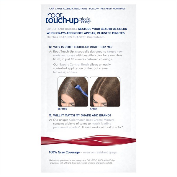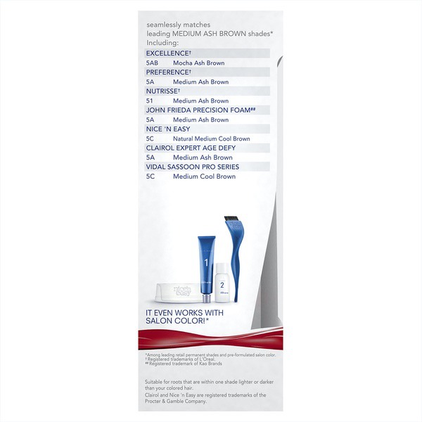 About This Item We aim to show you accurate product information. Manufacturers, suppliers and others provide what you see here, and we have not verified it. See our disclaimer Nothing beats that freshly colored look. We know you want to get the most mileage out of your hair color, and with Clairol Nice'n Easy Root Touch-Up, it's easy to extend the life of color and remain root-free with an easy refresh. Clairol Nice'n Easy Root Touch-Up, 5A Medium Ash Brown, Permanent Hair Color, 1 Kit The #1 permanent root solution for long-lasting, natural-looking roots Touch-up takes only 10 minutes and lasts up to 3 weeks Matches Nice ’n Easy 5C Natural Medium Cool Brown, Nutrisse 51 Medium Ash Brown, Excellence 5AB Mocha Ash Brown, Preference 5A Medium Ash Brown, ColorSilk 40 Medium Ash Brown Gives you permanent, touch-proof, sweat-proof roots
