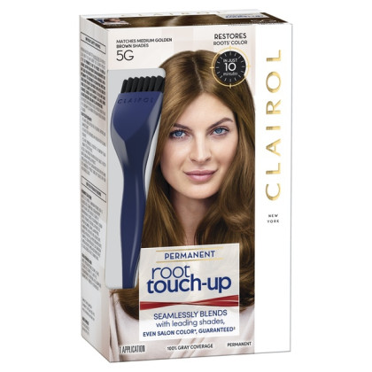 About This Item We aim to show you accurate product information. Manufacturers, suppliers and others provide what you see here, and we have not verified it. See our disclaimer Nothing beats that freshly colored look. We know you want to get the most mileage out of your hair color, and with Clairol Root Touch-Up, it's easy to extend the life of color. Nice 'n Easy Root Touch-Up takes only 10 minutes to apply and lasts up to three weeks. That means touch-proof, sweat-proof color that seamlessly blends with any shade, even salon-colored hair. Why settle for showing roots? Get the #1 permanent root solution with Clairol Root Touch-Up. Clairol Root Touch-Up Permanent Hair Color, 5G Medium Golden Brown