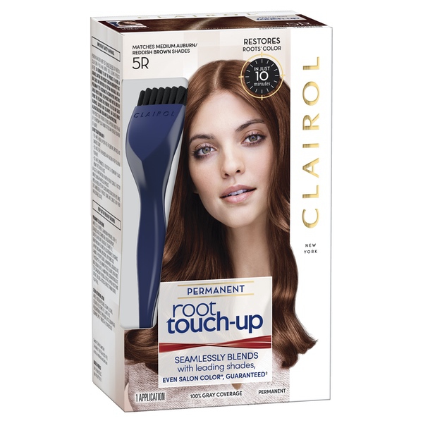 About This Item We aim to show you accurate product information. Manufacturers, suppliers and others provide what you see here, and we have not verified it. See our disclaimer Nothing beats that freshly colored look. We know you want to get the most mileage out of your hair color, and with Clairol Root Touch-Up, it's easy to extend the life of color. Nice 'n Easy Root Touch-Up takes only 10 minutes to apply and lasts up to three weeks. That means touch-proof, sweat-proof color that seamlessly blends with any shade, even salon-colored hair. Why settle for showing roots? Get the #1 permanent root solution with Clairol Root Touch-Up. Clairol Root Touch-Up Permanent Hair Color, 5R Medium Auburn