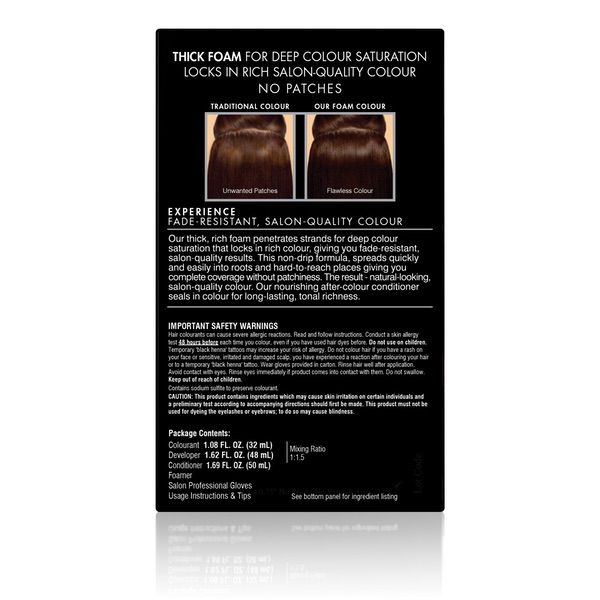 I have been coloring my own hair for seventeen years. This was the first Foam Hair dye I have tried and I loved it! I have shoulder length Hair and normally I have to use two boxes because I have thick hair, but One box of the foam was enough for all my hair with this Product. The foam made it so much easier to cover all of your hair. I would recommend this to anyone learning how to color there own hair it would be so much easier for them. On the plus side it made my hair super soft! I noticed it as soon as I had washed the color out before even adding the conditioner. It has a great shine to it and I love the color. It is the Bold Dark Chocolate Brown I have been looking for, it was just what I wanted. It looks like I went and had a professional color it. I would recommend this Product to every one! :) I will add I left it in my hair for the full 30 minutes not the 20 minutes. See more