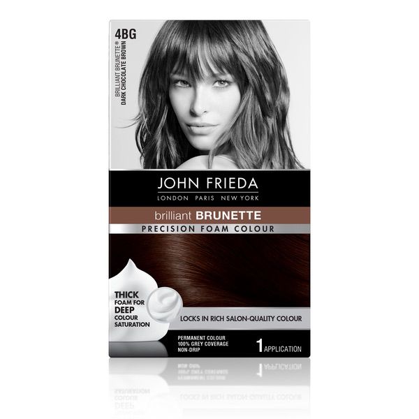 Easy to apply with the foam. I used John Frieda Brilliant Brunette 4BG Dark Chocolate Brown to get a more natural look after getting a balayage ombré last spring. Im very happy with the results.