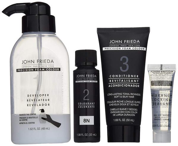 About This Item We aim to show you accurate product information. Manufacturers, suppliers and others provide what you see here, and we have not verified it. See our disclaimer Get salon-quality color with John Frieda Precision Foam Colour, 9N Light Natural Blonde. This home hair coloring system is a revolutionary departure than traditional kits that use liquid hair permanent hair dyes that can drip or miss entire sections of hair, resulting in messy, patchy results. Like most permanent hair colors, it provides outstanding grey coverage and includes a special after-care conditioner to help lock in color, but instead of liquid hair dye, the John Frieda Sheer Blonde system utilizes a foam colorant, traditionally only found in demi and semi-permanent color kits. The thick foam color penetrates each strand for deep color saturation that locks in rich color, for fade-resistant, salon-quality results. This non-drip formula, spreads quickly and easily into roots and hard-to-reach places for compete coverage without patchiness. The grey coverage hair color kit includes a nourishing after-color conditioner seals in color for long-lasting, tonal richness. John Frieda Sheer Blonde 9N Light Natural Blonde Precision Foam Colour, 1 Application: Thick foam for deep color saturation Locks in rich salon-quality color Permanent color John Frieda Sheer Blonde provides 100% grey coverage Nourishing after-color conditioner seals in color for long-lasting, tonal richness Non-drip No patches Fade resistant Kit includes: colourant, developer, conditioner, foamer, salon professional gloves and usage instructions Additional John Frieda grey coverage hair color shades sold separately