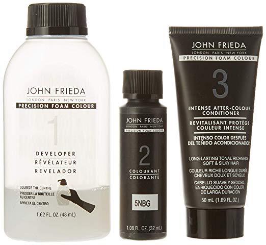 About This Item We aim to show you accurate product information. Manufacturers, suppliers and others provide what you see here, and we have not verified it. See our disclaimer Get salon-quality color with John Frieda Precision Foam Colour, 9N Light Natural Blonde. This home hair coloring system is a revolutionary departure than traditional kits that use liquid hair permanent hair dyes that can drip or miss entire sections of hair, resulting in messy, patchy results. Like most permanent hair colors, it provides outstanding grey coverage and includes a special after-care conditioner to help lock in color, but instead of liquid hair dye, the John Frieda Sheer Blonde system utilizes a foam colorant, traditionally only found in demi and semi-permanent color kits. The thick foam color penetrates each strand for deep color saturation that locks in rich color, for fade-resistant, salon-quality results. This non-drip formula, spreads quickly and easily into roots and hard-to-reach places for compete coverage without patchiness. The grey coverage hair color kit includes a nourishing after-color conditioner seals in color for long-lasting, tonal richness. John Frieda Sheer Blonde 9N Light Natural Blonde Precision Foam Colour, 1 Application: Thick foam for deep color saturation Locks in rich salon-quality color Permanent color John Frieda Sheer Blonde provides 100% grey coverage Nourishing after-color conditioner seals in color for long-lasting, tonal richness Non-drip No patches Fade resistant Kit includes: colourant, developer, conditioner, foamer, salon professional gloves and usage instructions Additional John Frieda grey coverage hair color shades sold separately