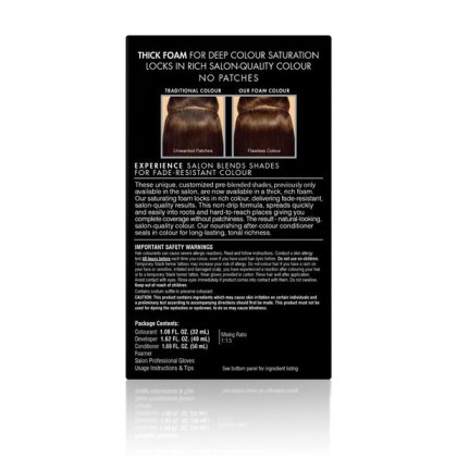 I have been coloring my own hair for seventeen years. This was the first Foam Hair dye I have tried and I loved it! I have shoulder length Hair and normally I have to use two boxes because I have thick hair, but One box of the foam was enough for all my hair with this Product. The foam made it so much easier to cover all of your hair. I would recommend this to anyone learning how to color there own hair it would be so much easier for them. On the plus side it made my hair super soft! I noticed it as soon as I had washed the color out before even adding the conditioner. It has a great shine to it and I love the color. It is the Bold Dark Chocolate Brown I have been looking for, it was just what I wanted. It looks like I went and had a professional color it. I would recommend this Product to every one! :) I will add I left it in my hair for the full 30 minutes not the 20 minutes. See more