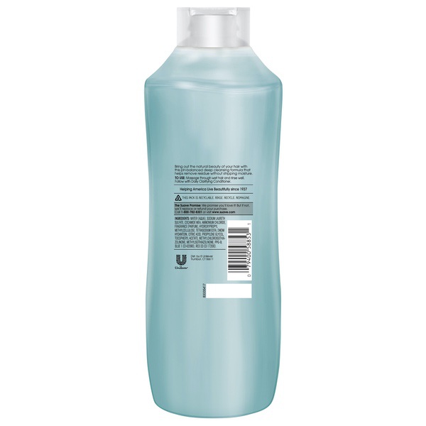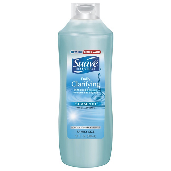 About This Item We aim to show you accurate product information. Manufacturers, suppliers and others provide what you see here, and we have not verified it. See our disclaimer The Suave Essentials Daily Clarifying Shampoo has been specially made with a gentle formula to bring out the best in your hair. This pH-balanced deep-cleansing shampoo brings out the natural beauty of your hair and revitalizes it by removing residue without stripping moisture. The formula also has a fresh, long-lasting fragrance. You'll love the way the Suave Essentials Daily Clarifying shampoo enhances your hair's natural beauty. Achieve the best results possible from this shampoo by pairing it with the Suave Daily Clarifying Conditioner, a combination that delivers 2x more moisture to your hair vs non conditioning shampoo. The fresh fragrance will leave your hair with a subtle, lingering scent after washing. The Suave Essentials shampoo and conditioner hair care range has a variety of options to suit everyone. Experiment with different fragrances, including Everlasting Sunshine, Strawberry, and Aloe Waterlily. Find your favorite fragrance and leave a review at Suave.com About Suave For over 75 years Suave has offered professional quality products for the entire family, which are proven to work as well as salon brands. The Suave mission is to make gold standard quality attainable to all, so everyone can look good, smell good, and feel good every day. The Suave Promise: full satisfaction guaranteed or we will replace your purchase. Full details at www.suave.com or call us at 1-800-782-8301. This pack is recyclable. Rinse. Recycle. Reimagine. Suave Essentials Daily Clarifying Shampoo, 30 oz Suave Essentials Daily Clarifying Shampoo gently cleanses hair Provides 2X more moisture when used with Daily Clarifying Conditioner PH-balanced and hypoallergenic formula Brings out hair's natural beauty and shine Formula won't strip moisture from hair Suitable for all hair types
