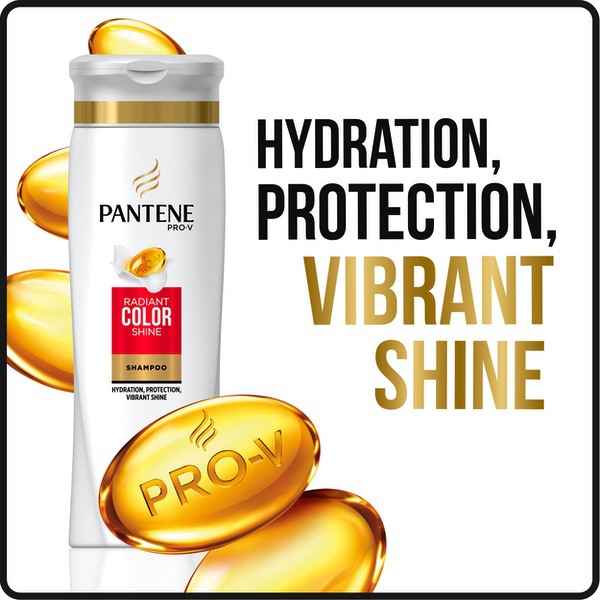 About This Item We aim to show you accurate product information. Manufacturers, suppliers and others provide what you see here, and we have not verified it. See our disclaimer Get up to 6 weeks of brilliant color* with Radiant Color Shine Shampoo. The powerful Pro-V formula wraps every strand as it gently cleanses, adds moisture and gives hair brilliant shine. With Pantene Pro-V Radiant Color Shine, youll get lasting color* and your hair will feel healthy as its hydrated from root to tip. *Radiant Color Shine shampoo and conditioner system vs. non-conditioning shampoo. Pantene Pro-V Radiant Color Shine Shampoo, 25 fl oz: Radiant Color Shine Shampoo nourishes hair with a blend of Pro-V nutrients and antioxidants so hair is strong against damage Delivers up to 6 weeks of brilliant color* (*Radiant Color Shine shampoo and conditioner system vs. non-conditioning shampoo) Luxurious formula made for color-treated hair with a nutrient-rich lather that wraps every strand for all-day lasting shine Powerful Pro-V formula hydrates and nourishes for natural shine and touchably soft hair Brings shine to color-treated hair