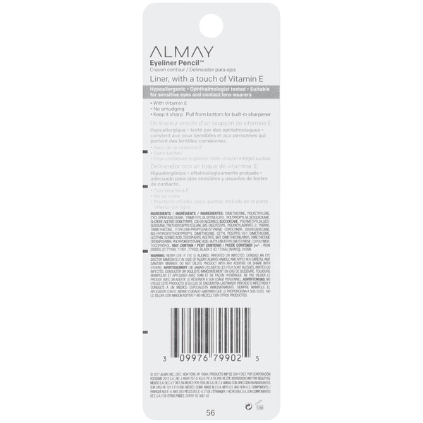 About This Item We aim to show you accurate product information. Manufacturers, suppliers and others provide what you see here, and we have not verified it. See our disclaimer Almay Eyeliner Pencil, Black Raisin brings out your eye color with rich, contrasting color! Pearlescent eyeliner defines your eyes with rich tones that make your eye color pop. Built in sharpener ensures precise application, and color resists smudging and fading throughout the day. Available in four contrasting colors for brown, blue, hazel and green eyes. Complete the look with Almay Intense i-Color look with the coordinating mascara and eyeshadow palette. Ophthalmologist tested. Suitable for sensitive eyes. Dermatologist tested. Almay - Quality ingredients. Hypoallergenic. Beautiful definition. Precisely defined eyes. Wears all day Water-resistant and smudge-proof Convenient built-in sharpener Made for sensitive eyes Hypoallergenic Opthamologist tested