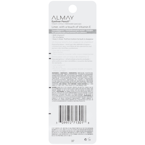 About This Item We aim to show you accurate product information. Manufacturers, suppliers and others provide what you see here, and we have not verified it. See our disclaimer Almay Eyeliner Pencil, Black Raisin brings out your eye color with rich, contrasting color! Pearlescent eyeliner defines your eyes with rich tones that make your eye color pop. Built in sharpener ensures precise application, and color resists smudging and fading throughout the day. Available in four contrasting colors for brown, blue, hazel and green eyes. Complete the look with Almay Intense i-Color look with the coordinating mascara and eyeshadow palette. Ophthalmologist tested. Suitable for sensitive eyes. Dermatologist tested. Almay - Quality ingredients. Hypoallergenic. Beautiful definition. Precisely defined eyes. Wears all day Water-resistant and smudge-proof Convenient built-in sharpener Made for sensitive eyes Hypoallergenic Opthamologist tested