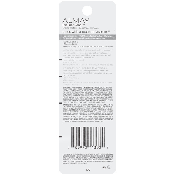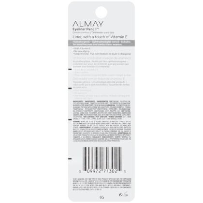 About This Item We aim to show you accurate product information. Manufacturers, suppliers and others provide what you see here, and we have not verified it. See our disclaimer Almay Eyeliner Pencil, Black Raisin brings out your eye color with rich, contrasting color! Pearlescent eyeliner defines your eyes with rich tones that make your eye color pop. Built in sharpener ensures precise application, and color resists smudging and fading throughout the day. Available in four contrasting colors for brown, blue, hazel and green eyes. Complete the look with Almay Intense i-Color look with the coordinating mascara and eyeshadow palette. Ophthalmologist tested. Suitable for sensitive eyes. Dermatologist tested. Almay - Quality ingredients. Hypoallergenic. Beautiful definition. Precisely defined eyes. Wears all day Water-resistant and smudge-proof Convenient built-in sharpener Made for sensitive eyes Hypoallergenic Opthamologist tested
