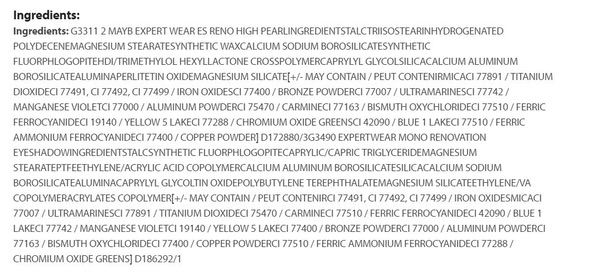 About This Item We aim to show you accurate product information. Manufacturers, suppliers and others provide what you see here, and we have not verified it. See our disclaimer Maybelline® Expert Wear® Eyeshadow Iconic, creamy color in every shade. No fade. No flake. Now, longwear goes everyday luxurious with Expert Wear® Eyeshadow Monos. Up to 14 hour wear of super saturated color. Ophthalmologist tested. Contact lens safe. Packaging may vary, what you receive may not be what is reflected on site. Creamy saturated pigments in every mono eyeshadow Wear alone or mix and match colors Long-wearing and easy to blend Up to 14 hour wear