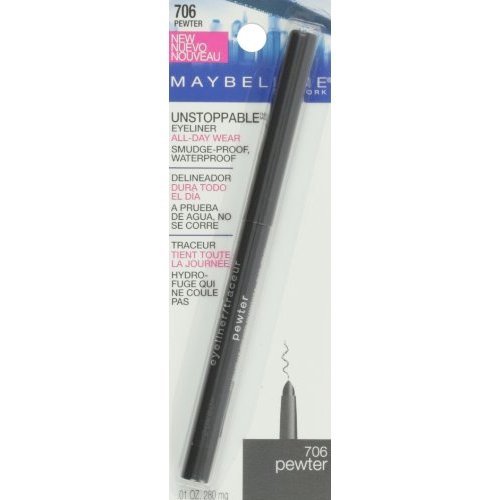 About This Item We aim to show you accurate product information. Manufacturers, suppliers and others provide what you see here, and we have not verified it. See our disclaimer Maybelline Unstoppable Eyeliner From natural to bold definition, this waterproof and smudge-resistant eyeliner delivers color that stays true all day. This mechanical eyeliner swivels up and down, so the point always stays sharp. Ophthalmologist tested. Suitable for sensitive eyes and contact lens wearers. This mechanical liner defines eyes and delivers the ultimate in application control Eyeliner stays in place until it is washed off All-day wear