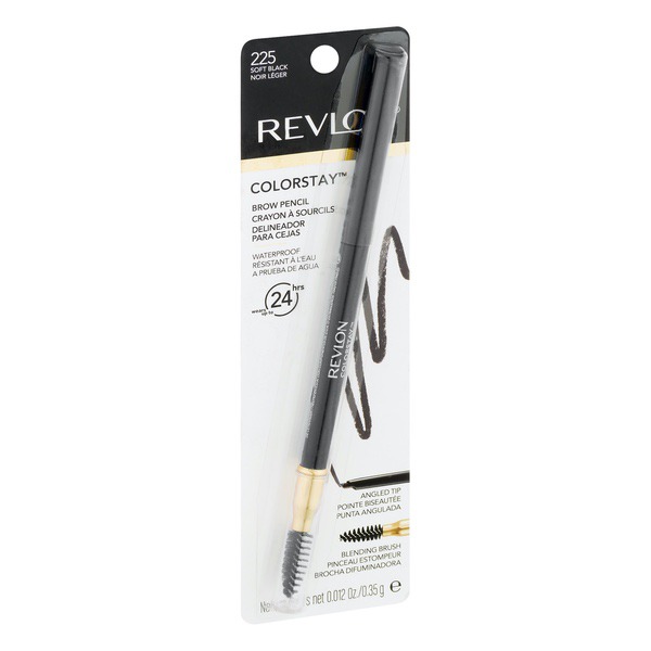 About This Item We aim to show you accurate product information. Manufacturers, suppliers and others provide what you see here, and we have not verified it. See our disclaimer Revlon® Colorstay⢠Brow Pencil Soft Black. This product is waterproof and can be wears up to 24 hrs. It has soft, bendable color to fill and define brows. Revlon colorstay brow pencil, soft black