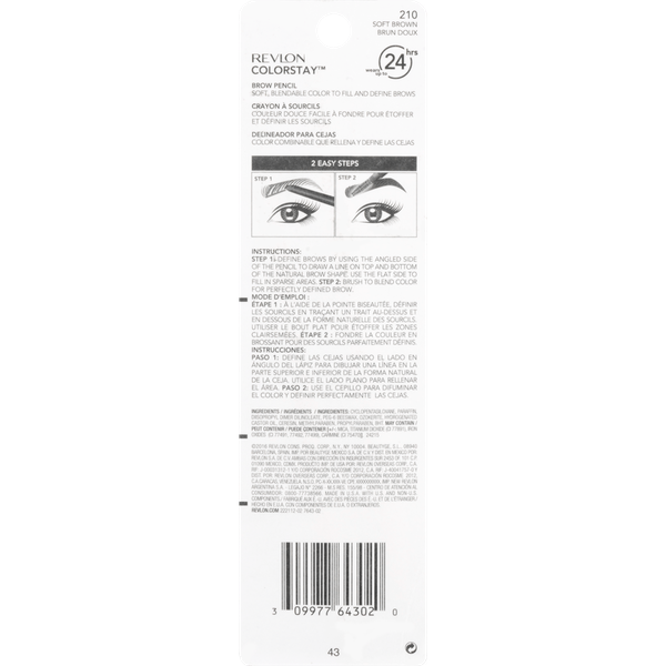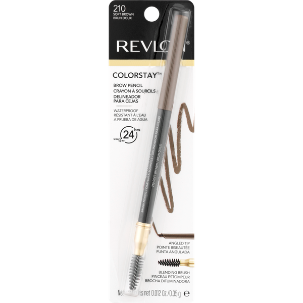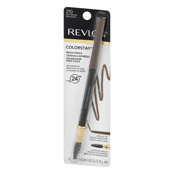 About This Item We aim to show you accurate product information. Manufacturers, suppliers and others provide what you see here, and we have not verified it. See our disclaimer Revlon® Colorstay⢠Brow Pencil Soft Black. This product is waterproof and can be wears up to 24 hrs. It has soft, bendable color to fill and define brows. Revlon colorstay brow pencil, soft black