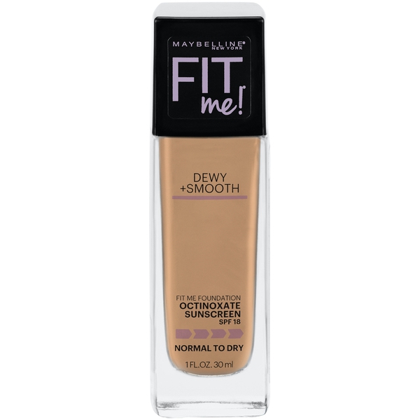 About This Item We aim to show you accurate product information. Manufacturers, suppliers and others provide what you see here, and we have not verified it. See our disclaimer Get smooth, hydrated, and even skin tone with Fit Me Dewy + Smooth foundation. Formulated to deliver hydrated and smooth skin with a natural luminous finish. Also, this foundation makeup has the added benefit of sun protection SPF 18. The end result is beautifully dewy and smooth skin with a shade that fits you. Dermatologist tested. Allergy tested. Non-comedogenic. Fragrance-free. Packaging may vary, what you receive may not be what is reflected on site. Dewy and smooth foundation makeup with spf 18 Hydrating foundation smoothes skin's texture Leaves a naturally luminous finish Moisturizing foundation ideal for normal to dry skin Apply foundation onto skin and blend with fingertips or an applicator and blend. For external use only. Dewy and smooth foundation makeup with SPF 18 Hydrating foundation smoothes skin's texture Leaves a naturally luminous finish Moisturizing foundation ideal for normal to dry skin