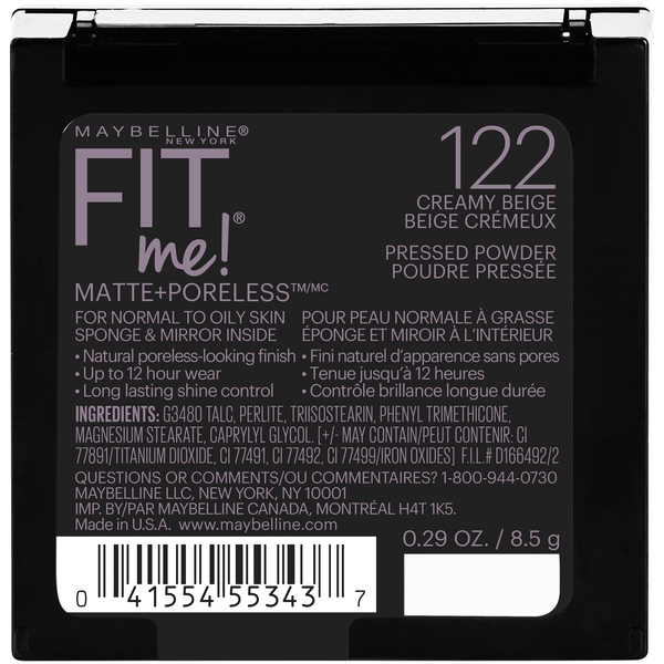 About This Item We aim to show you accurate product information. Manufacturers, suppliers and others provide what you see here, and we have not verified it. See our disclaimer Ideal for normal to oily skin, this matte face powder visibly reduces the look of pores and mattifies shine, while effortlessly blending with the skin. The Fit Me Perlite Mineral technology absorbs oil to mattify skin, while pores virtually disappear thanks to blurring micro-powders. Dermatologist tested. Allergy tested. Non-comedogenic. Ideal for normal to oily skin. Packaging May Vary Reduce the look of pores and mattify shine Buildable coverage that you can customize Matte poreless powder ideal for normal to oily skin Can be worn alone or on top of foundation to set makeup Non-comedogenic and is dermatologist and allergy tested