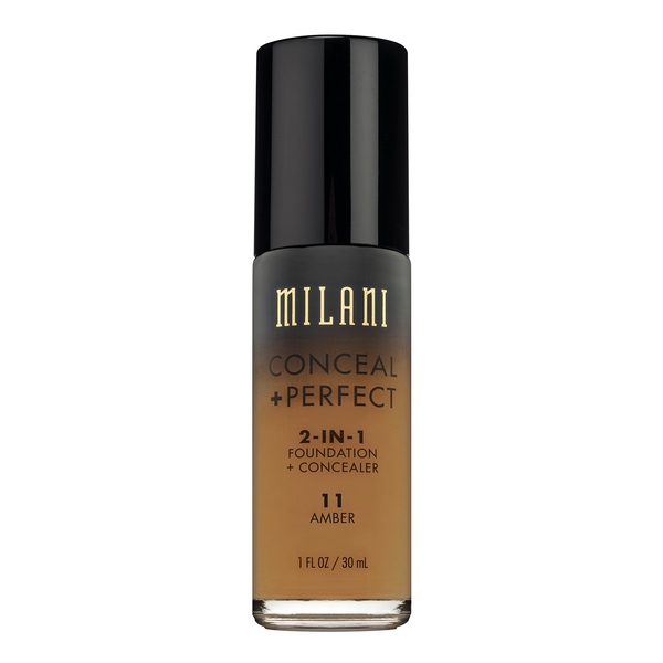 About This Item We aim to show you accurate product information. Manufacturers, suppliers and others provide what you see here, and we have not verified it. See our disclaimer Give yourself a look that will put some extra confidence in your step with this Milani Conceal + Perfect 2-in-1 Foundation and Concealer. It offers medium to full coverage so that you can cover up blemishes and other imperfections on your skin. This face foundation comes in a 1 fl oz container and is long-lasting, oil-free, lightweight, water-resistant and sweat-proof. It's available in many shades so that you can pick the one that matches your natural skin tone. MILANI Conceal + Perfect 2-In-1 Foundation + Concealer, Amber