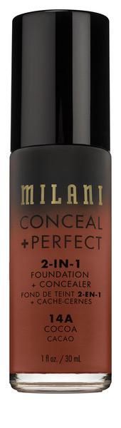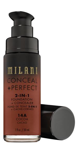About This Item We aim to show you accurate product information. Manufacturers, suppliers and others provide what you see here, and we have not verified it. See our disclaimer Give yourself a look that will put some extra confidence in your step with this Milani Conceal + Perfect 2-in-1 Foundation and Concealer. It offers medium to full coverage so that you can cover up blemishes and other imperfections on your skin. This face foundation comes in a 1 fl oz container and is long-lasting, oil-free, lightweight, water-resistant and sweat-proof. It's available in many shades so that you can pick the one that matches your natural skin tone. Medium to Full Coverage, Long-Lasting, Oil-Free, Water Resistant, Sweat Proof