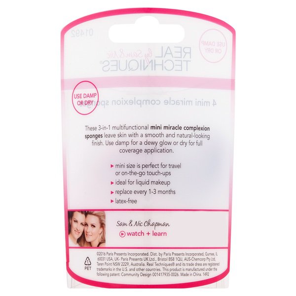 About This Item We aim to show you accurate product information. Manufacturers, suppliers and others provide what you see here, and we have not verified it. See our disclaimer These 3-in-1 multifunctional Real Techniques Mini Miracle Complexion Makeup Sponges leave skin with a smooth and natural-looking finish. The mini size is perfect for travel or on-the-go touch-ups Real Techniques Mini Miracle Complexion Makeup Blender Sponges (4 Count)