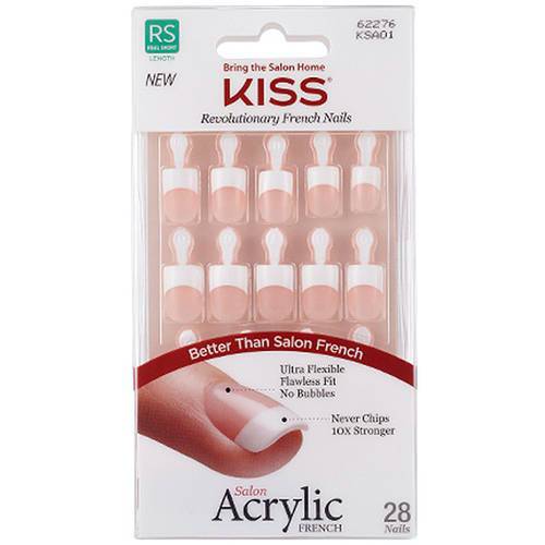 About This Item We aim to show you accurate product information. Manufacturers, suppliers and others provide what you see here, and we have not verified it. See our disclaimer KISS Revolutionary French Nails Acrylic Kit contains 28 French nails in 14 sizes, pink gel glue, mini file, manicure stick. Flexible fit delivers lasting comfort. Snug fit, 25% thinner than other brands. Acrylic strength tip is 10x stronger than other brands. Ultra flexible, flawless fit, no bubbles.