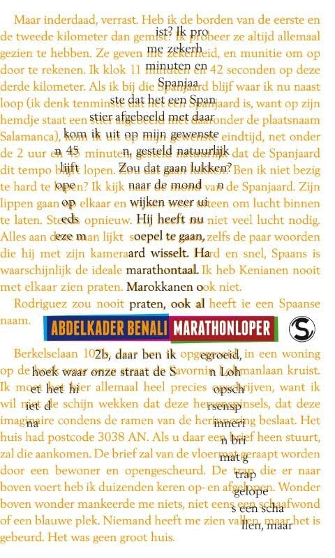 In zijn jongensjaren was Abdelkader Benali lid van PAC, de grootste atletiekvereniging in Rotterdam. Zijn grote voorbeeld was de Marokkaanse atleet Saïd Aouita, die in de jaren tachtig heerste op de middenafstanden.Maar in de jaren negentig ging Benali studeren, en niet veel later deed de droom van het literaire schrijverschap zijn sportieve ambities vervagen, zeker toen hij met Bruiloft aan zee ook werkelijk een droomdebuut bleek te hebben geschreven. Maar ergens in zijn achterhoofd en in het weefsel van spieren en pezen bleef het sportieve vermogen latent aanwezig. Benali fietste en rende rondjes in de talloze parken van de vele steden waar hij verbleef – en hij ontdekte de duursporter in zichzelf.En zo kwam het dat hij in de herfst van 2005 plotseling besloot aan de marathon van Boedapest deel te nemen. En daar bleef het niet bij. Een half jaar later liep hij in de marathon van Rotterdam een persoonlijk record (2 uur 52 minuten en 25 seconden). Dat record is beslist nog voor verbetering vatbaar.Marathonloper is een literaire verbeelding van Benali’s passie voor het hardlopen. Als zodanig is het de uitdrukking van zijn fascinatie en liefde voor deze sport.Abdelkader Benali (1976) is de auteur van veelgeprezen romans als Bruiloft aan zee, De langverwachte, Laat het morgen mooi weer zijn, Feldman en ik