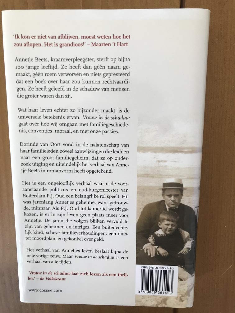 Iedere familie heeft een geheim. Dorinde van Oort ontrafelt het ongelooflijke verhaal van Annetje Beets, de vrouw in de schaduw. Met een nawoord van de auteur.In Vrouw in de schaduw vertelt Dorinde van Oort spannend en goed gedocumenteerd het ongelooflijke levensverhaal van haar oudtante. Het verhaal van Annetje Beets, een charmante schoonheid en een kraamverpleegster, met ambitie en acteertalent. Haar grote liefde is de jonge, getrouwde politicus P.J. Oud. Hun onwettige kind mag niet geboren worden, maar Annetje besluit het jongetje heimelijk bij haar zus onder te brengen.Dit is het verhaal van een vrouw die altijd ‘geliefde’ moet blijven en uiteindelijk als ‘huishoudster’ bij de vader van de politicus intrekt. Kort voor zijn dood betaalt vader Oud zijn buurman en vriend, de beroemde zanger Christiaan Mansborg, om met haar te trouwen. Maar dan heeft Annetje al duistere plannen waarin Mansborg niet meer voorkomt. Vrouw in de schaduw is een verhaal van alle tijden: over liefde, macht en geld.
