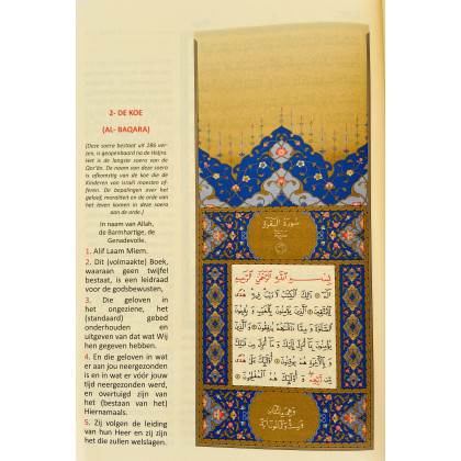 De Koran is zowel geschreven in het Arabisch & Nederlands. De buitenzijde is van Thermo leer en de pagina's zijn voorzien van een goud tabblad.