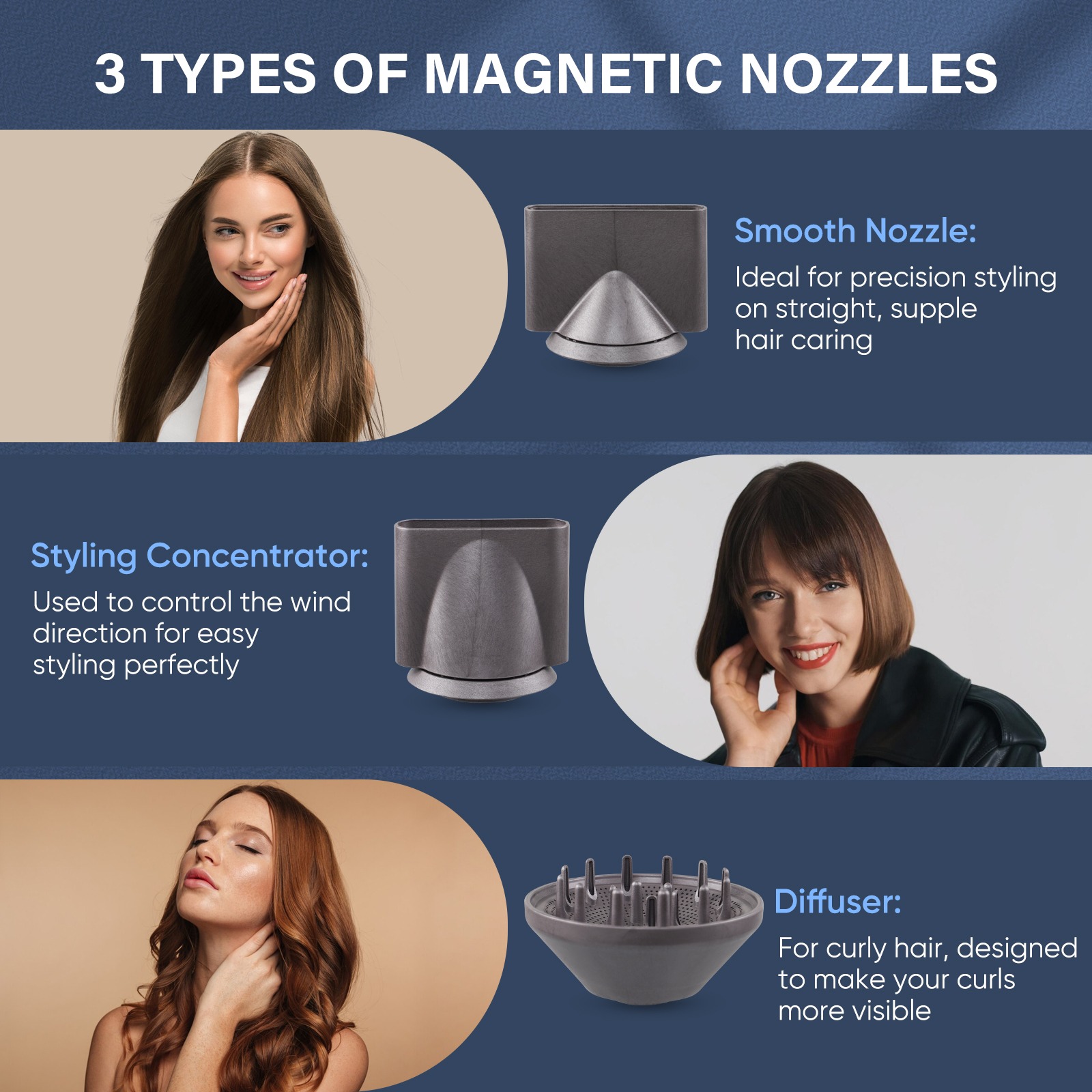 • Versatile styling tools – Includes 2 concentrator nozzles and an extra-large diffuser for perfect curls and added volume.