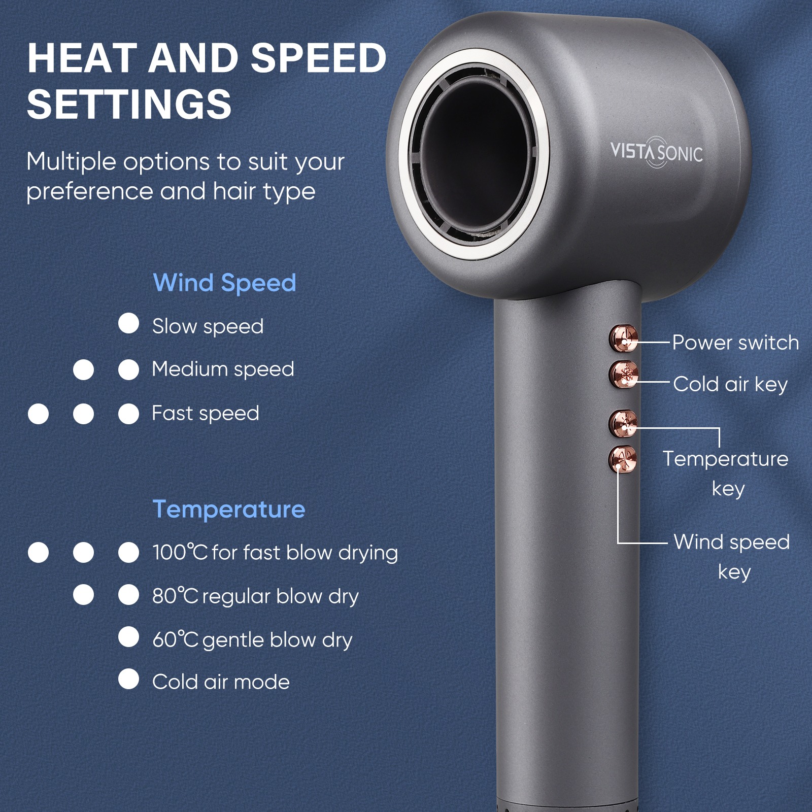 VistaSonic Super Dryer® – Ionic Hair Dryer with Diffuser for Curly Hair