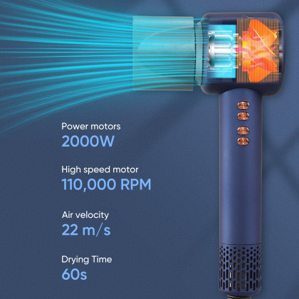 Powerful 1600W motor – Ultra-fast drying with airflow speeds up to 155 km/h.