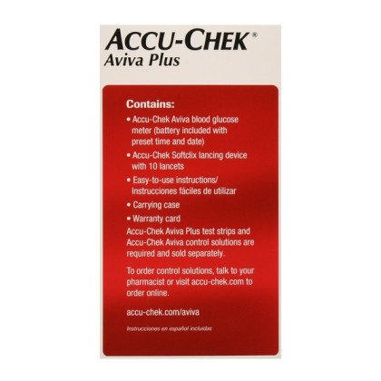About This Item We aim to show you accurate product information. Manufacturers, suppliers and others provide what you see here, and we have not verified it. See our disclaimer Easy-to-handle, quick-fill test strip makes sampling easier Suggested Use : N/A Active Ingredients : N/A Inactive Ingredients : N/A Other Ingredients : N/A Care Kit, Aviva Plus Blood glucose monitoring system. For single patient use only. Everyday easy. Uses Accu-Check Aviva Plus test strips. For testing glucose in fresh capillary whole blood. For single patient use only. For in vitro diagnostic use.