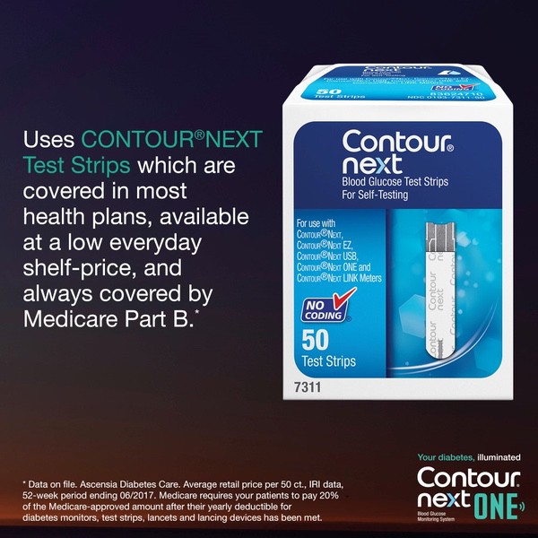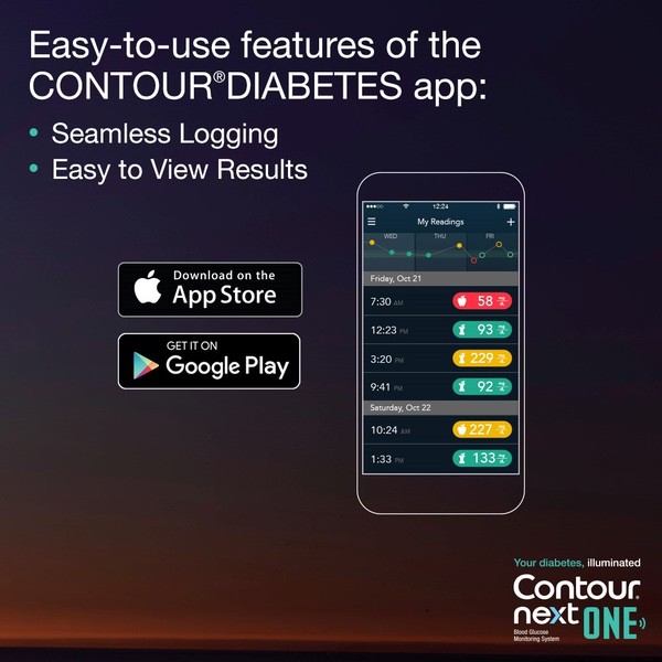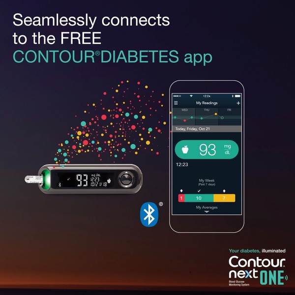 About This Item We aim to show you accurate product information. Manufacturers, suppliers and others provide what you see here, and we have not verified it. See our disclaimer The CONTOUR®NEXT ONE smart meter and app system combines remarkable accuracy with ease-of-use to benefit a broad range of patients living with diabetes. 92% of users think it is quicker and easier to interpret readings using the CONTOUR®NEXT ONE smartLIGHT feature* Contour Next Blood Glucose Monitoring System: Our most accurate meter yet! Remarkable accuracy within ±8.4% of lab values** Simplicity helps patients test with confidence Seamlessly connect to your IOS or Android devices smartLIGHT target range indicator immediately identifies if blood glucose readings are above, below or within target range, giving patients instant feedback Second-Chance® technology gives you 60 seconds to reapply blood to the same strip which may help prevent wasted strips Simple to use, the remarkably accurate CONTOUR®NEXT ONE smart meter and CONTOUR®DIABETES app seamlessly connect to capture all your BG readings and help you to manage your diabetes, smarter.The ONE smart meter and app system to choose for many of your diabetes care needs. Package contains a Contour Next One Meter, lancing device, 10 Microlet lancets, carrying case, user guide, quick reference guide, warranty card