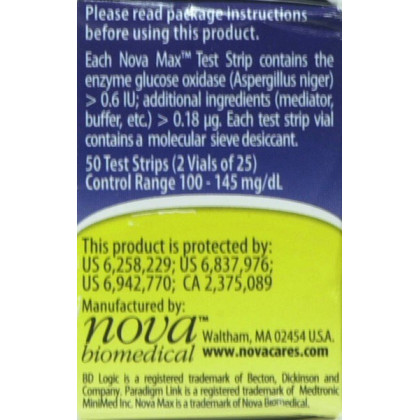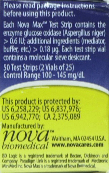 About This Item We aim to show you accurate product information. Manufacturers, suppliers and others provide what you see here, and we have not verified it. See our disclaimer Active Ingredients: Each Test Strip Contains: Enzyme Glucose Oxidase (Aspergillus Niger) > 0.6 IU; Additional Ingredients (Mediator, Buffer, Etc) > 0.18 mcg. Each Test Strip Vial Contains A Molecular Sieve Desiccant Uses: For use with: Nova Max Link monitors, Nova Max monitors, BD Logic monitors, Paradigm Link monitors.