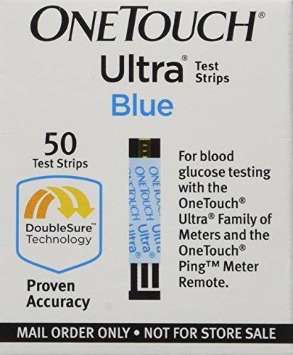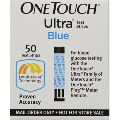 About This Item We aim to show you accurate product information. Manufacturers, suppliers and others provide what you see here, and we have not verified it. See our disclaimer OneTouch Ultra Blue Diabetic Test Strips provide fast and less painful testing of glucose levels. Designed for use with the OneTouch Ultra Soft Automatic Blood Sampler and OneTouch Ultra Soft Lancets, this blood test strip is ideal for diabetic patients who need to monitor their body glucose level at home. If you have diabetes, you already know that with the right tools and health plan, you can still enjoy life's sweets. OneTouch Ultra Blue Test Strips help you test your blood glucose simply and accurately for your optimum health goals. The sampler automatically draws blood into the strip, and provides results within five seconds. Test Strips, Blue DoubleSure technology. Proven accuracy. For blood glucose testing with the OneTouch Ultra Family of Meters and the OneTouch Ping Meter Remote. DoubleSure technology automatically checks each sample twice to confirm their result. Requires just a speck of blood. Covered at the lowest co-pay on most health plans. Visit us at: www.OneTouch.com for valuable diabetes-related knowledge, tools, and special offers. As your partner in diabetes care, we welcome you to contact us. In vitro diagnostic for self-testing. 1 vial of 50 test strips.