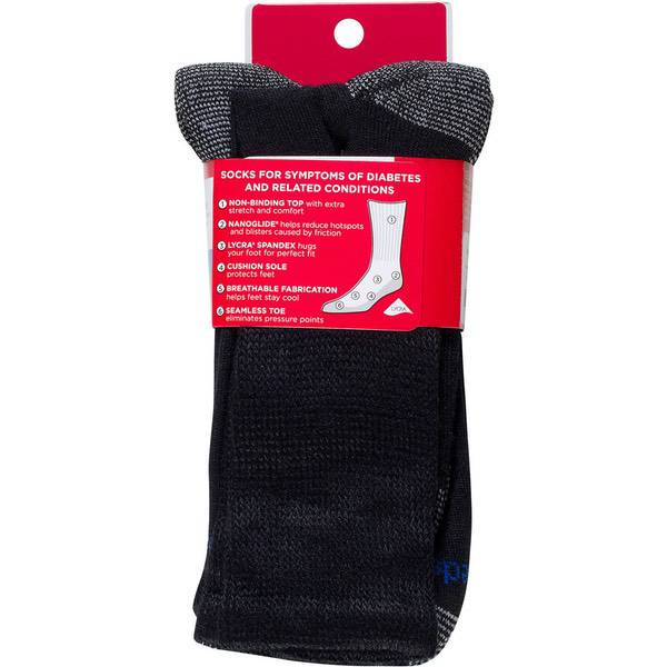 About This Item We aim to show you accurate product information. Manufacturers, suppliers and others provide what you see here, and we have not verified it. See our disclaimer Get the comfort of cushioned sole socks with the MediPeds Mens NanoGLIDE Crew, 4-Pack. They have NanoGLIDE technology that helps reduce hot spots and blisters caused by friction. These MediPeds socks have a reinforced heel and toe for superior durability, a non-binding top with extra stretch and comfort, and a seamless toe that reduces pressure points. The men's cushion socks has stretch fiber that hugs your foot for better fit and comes in a convenient pack of four. NanoGLIDE helps reduce hot spots and blisters caused by friction Reinforced heel and toe for superior durability Non-binding top with extra stretch and comfort Stretch fiber hugs your foot for perfect fit Cushion sole protects feet and provides additional comfort Seamless toe reduces pressure points 58% Polyester, 37% Acrylic, 3% Nylon, 2% LYCRA Fiber Country of Origin: United States