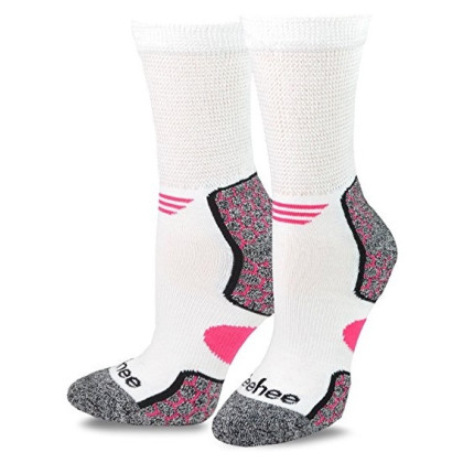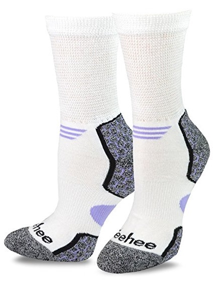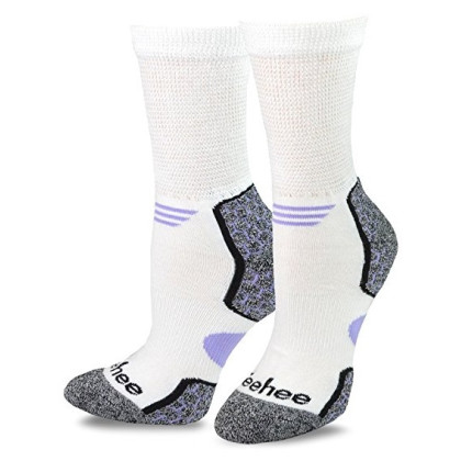 About This Item We aim to show you accurate product information. Manufacturers, suppliers and others provide what you see here, and we have not verified it. See our disclaimer Our socks are engineered to address diabetes-related symptoms, leg fatigue, swelling, and dry skin. They are constructed with yarns and comfort features that help reduce foot irritation and pressure on the legs. Made by Viscose from Bamboo. Sizing Guidelines: Sock Size 9-11/Shoe size 6-9, Sock Size 10-13/Shoe size 7-10. TeeHee Viscose from Bamboo Diabetic Crew Socks 3-Pack Quality Guarantee: Contact us for any problems you might encounter and we will do all we can to help! Signature Viscose from Bamboo Yarn - Non-binding top, soft, smooth, and stays up and on. Sizing Guidelines: Sock Size 9-11/Shoe size 6-9, Sock Size 10-13/Shoe size 7-10 Machine wash warm. Use only non-chlorine bleach when needed. Tumble dry low.