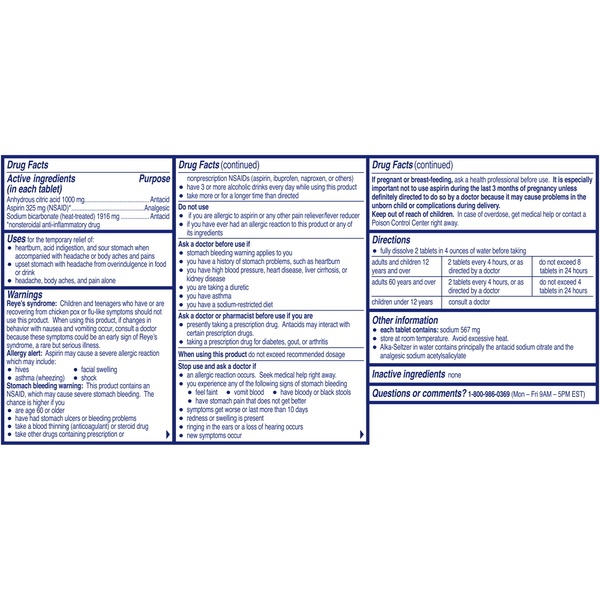 Alka-Seltzer Original Effervescent Tablets, 72 Count
