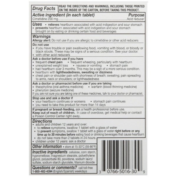 About This Item We aim to show you accurate product information. Manufacturers, suppliers and others provide what you see here, and we have not verified it. See our disclaimer Tagamet Acid Reducer, 200mg, Pack of 30 Manage your heartburn with Tagamet HB 200. Tagamet HB 200 relieves and prevents heartburn, acid indigestion, and sour stomach. To prevent heartburn symptoms, take Tagamet HB 200 before your first bite or any time up to 30 minutes before eating food or drinking beverages that may cause heartburn. To relieve heartburn symptoms and for relief of acid indigestion and sour stomach, take Tagamet at the first signs of discomfort. Tagamet HB 200 controls stomach acid and prevents heartburn. Tagamet HB 200 can also be taken at bedtime to help prevent heartburn at night.