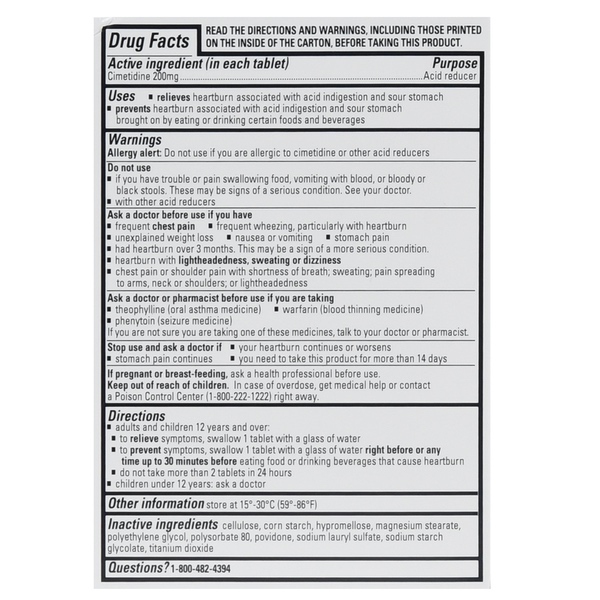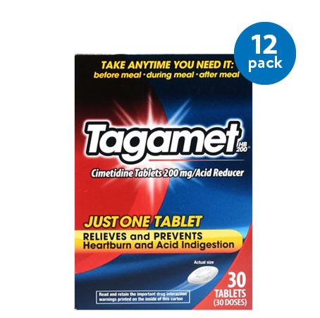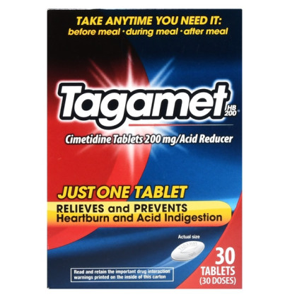 About This Item We aim to show you accurate product information. Manufacturers, suppliers and others provide what you see here, and we have not verified it. See our disclaimer Tagamet Acid Reducer, 200mg, Pack of 30 Manage your heartburn with Tagamet HB 200. Tagamet HB 200 relieves and prevents heartburn, acid indigestion, and sour stomach. To prevent heartburn symptoms, take Tagamet HB 200 before your first bite or any time up to 30 minutes before eating food or drinking beverages that may cause heartburn. To relieve heartburn symptoms and for relief of acid indigestion and sour stomach, take Tagamet at the first signs of discomfort. Tagamet HB 200 controls stomach acid and prevents heartburn. Tagamet HB 200 can also be taken at bedtime to help prevent heartburn at night.