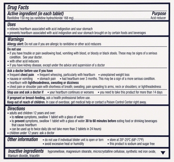 Whenever I have heartburn, the best and quickest way to relief is Zantac 150. I get relief almost immediatley after taking Zantac 150. If I know that I am going to eat something that will give me heartburn, I take one before eating and never get any of the heartburn symptoms. I love this product.