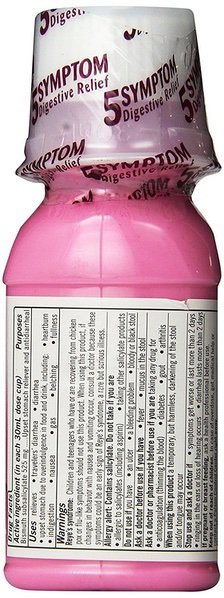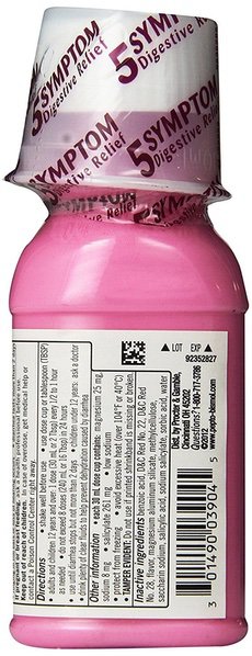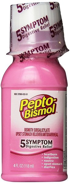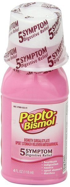 About This Item We aim to show you accurate product information. Manufacturers, suppliers and others provide what you see here, and we have not verified it. See our disclaimer The original upset stomach and diarrhea reliever. Relieve heartburn, indigestion, nausea, upset stomach, and diarrhea with the smooth original liquid formula that comes with just a hint of a fresh wintergreen taste.Use as directed. Bismuth Subsalicylate. Upset Stomach Reliever/Antidiarrheal.Whether youâ??re looking for relief in liquid, chewables, or caplets Pepto-Bismol has you covered. With five-symptom digestive relief, itâ??s no wonder that weâ??re the No. 1 pharmacist-recommended brand for relief of upset stomach due to overindulgence in food and drink.*Get five-symptom digestive relief from:And, when little tummies get upset, turn to Children's Pepto Antacid Chewable Tablets for help. When belly woes hit, Pepto-Bismol has you covered.* Based on Pharmacy Times OTC survey 2013 (Upset Stomach Remedies Category). Pepto Bismol Liquid for Nausea, Heartburn, Indigestion, Upset Stomach, and Diarrhea Relief, Original Flavor 4 oz: 5 SYMPTOM Digestive Relief: Nausea, Heartburn, Indigestion, Upset Stomach, Diarrhea (Packaging may vary) The #1 Pharmacist Recommended Brand for Upset Stomachs (Based on Pharmacy Times 2018 Survey-upset stomach remedies category) Pepto's formula now has improved coating to calm and soothe your stomach Bismuth Subsalicylate Whether you're looking for an upset stomach medicine or nausea help, wondering what to do for indigestion or heartburn relief, or trying to find what's good for diarrhea, Pepto provides fast relief