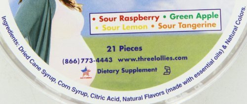 About This Item We aim to show you accurate product information. Manufacturers, suppliers and others provide what you see here, and we have not verified it. See our disclaimer The Natural Way to Ease Morning Sickness!NaturalDrug-FreeDoctor RecommendedSour Raspberry, Green Apple, Sour Lemon & Sour Tangerine21 Pieces Free Of Drugs Disclaimer These statements have not been evaluated by the FDA. These products are not intended to diagnose, treat, cure, or prevent any disease. Three Lollies Preggie Pop Drops Sour Raspberry Sour Apple Sour Lemon Sour Tangerine - 21 Pieces