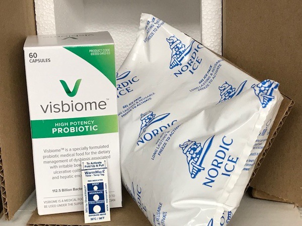 Visbiome 112.5 60 Caps. Shipped in Styrofoam Lined box with 24oz ice pack and Temperature Monitor..