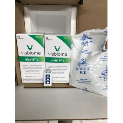 About This Item We aim to show you accurate product information. Manufacturers, suppliers and others provide what you see here, and we have not verified it. See our disclaimer Visbiome is a High Potency medical food for the dietary management of Irritable Bowel Syndrome, Ulcerative Colitis, or an Ileal Pouch consisting of 8 strains of live freeze-dried lactic acid bacteria. Each Caps contains 112.5 billion live probiotic bacteria and is supplied in a box containing 60 Caps. Ingredients: Visbiome contains one strain of streptococcus thermophilus, three strains of bifidobacterium and four strains of lactobacillus. During hot season the product may arrive at room temperature or warm to touch. Visbiome can be safely stored at 80 degrees for as long as one week without affecting its potency for another two years. Visbiome 112.5 Billion Caps Visbiome is High Potency probiotic that delivers the highest available concentration of beneficial live bacteria of any probiotic in the world. Shipped in a Styrofoam lined box with 24 oz ice pack.